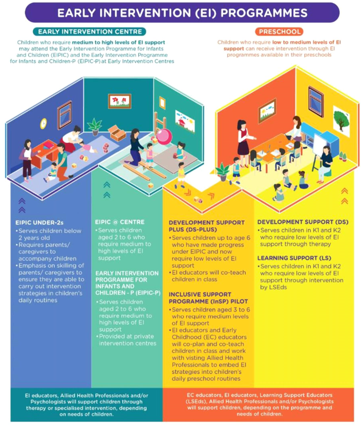 The early childhood sector in Singapore comprises two key service areas: preschool services and Early Intervention (EI) services.
